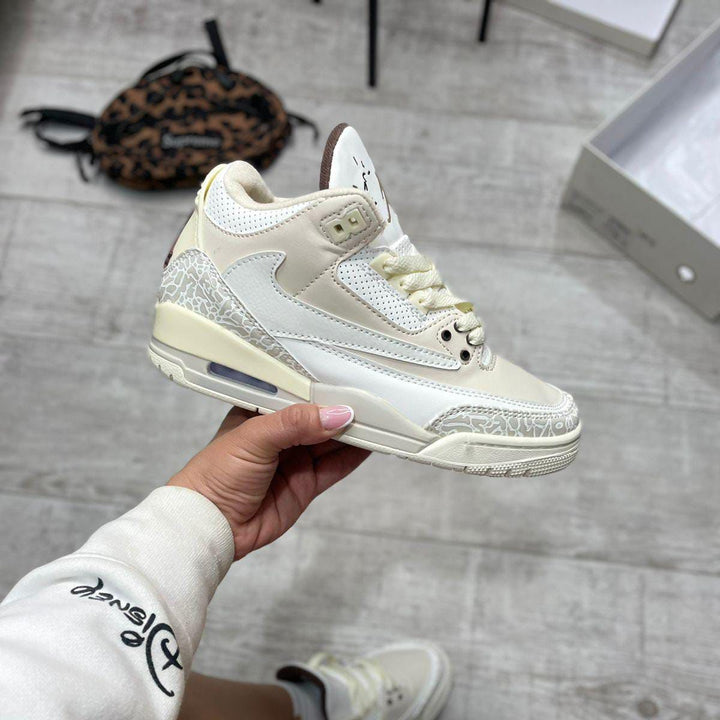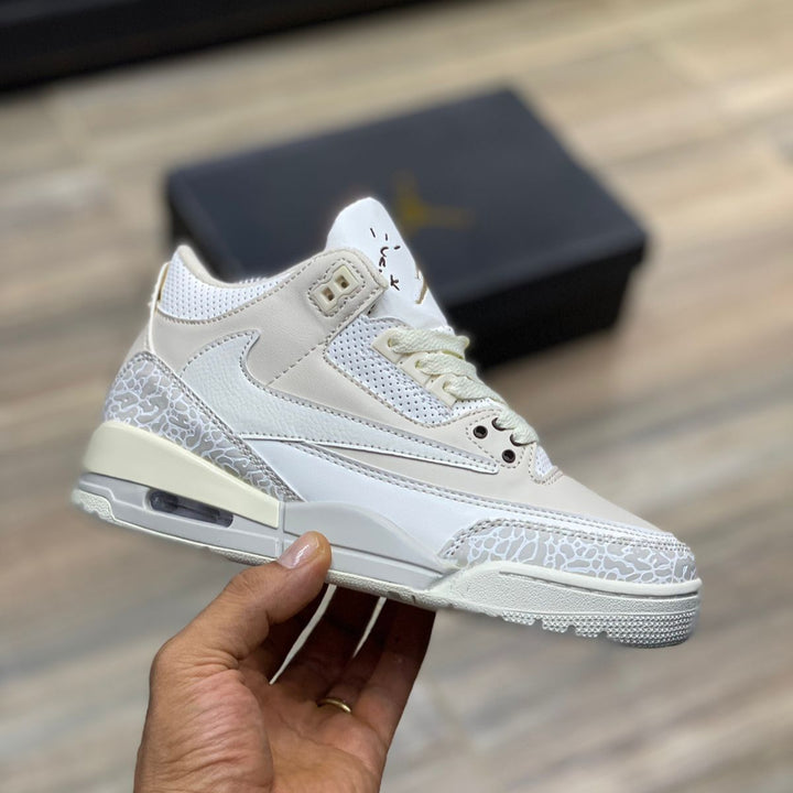 Las JDN R3 Travis Beige combinan un diseño icónico con detalles exclusivos que las hacen únicas. Su estética en tonos beige con el característico patrón "elephant print" aporta un estilo sofisticado y versátil, ideal para quienes buscan destacar con un look premium.