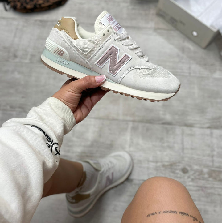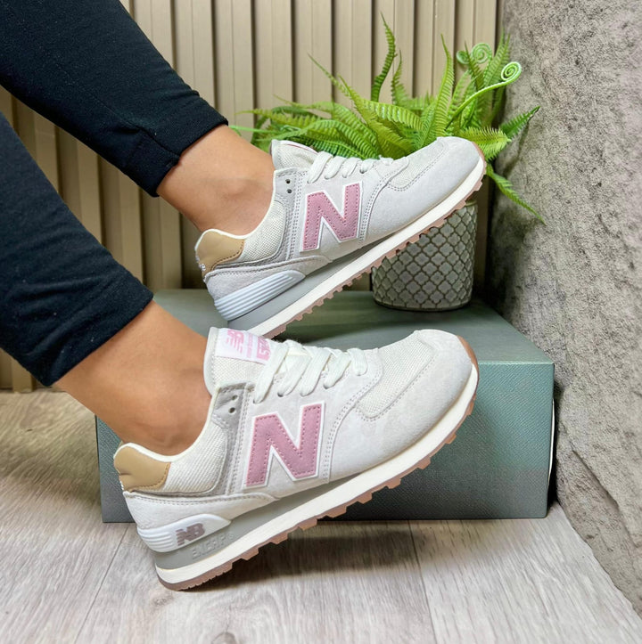 Las NB 574 son el equilibrio perfecto entre comodidad, estilo y versatilidad. Con un diseño atemporal y materiales de primera calidad, estas zapatillas son ideales para el día a día. Su combinación de tonos beige, rosa y detalles dorados les da un toque femenino y elegante.