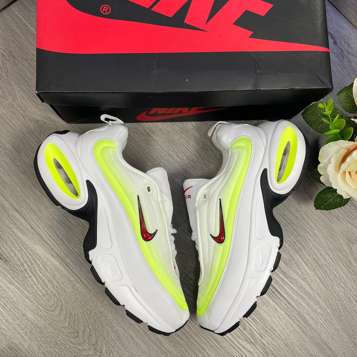- Diseño en tonos blanco y verde neón con detalles en negro y rojo, aportando un look moderno y vibrante.