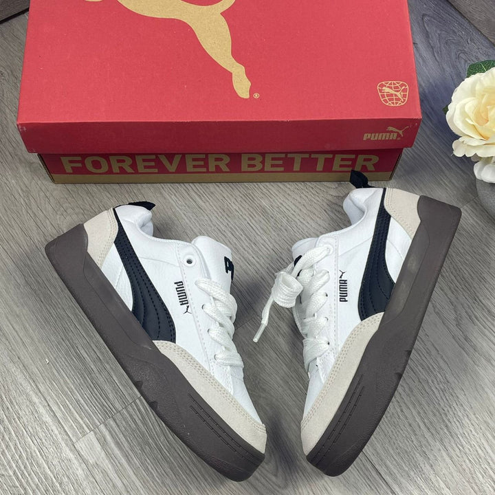 Las PMA Cali Court fusionan la esencia del tenis retro con detalles contemporáneos, logrando un equilibrio perfecto entre estilo, comodidad y versatilidad. Su diseño en blanco y negro con suela gum las convierte en una opción ideal para quienes buscan un look casual y atemporal.